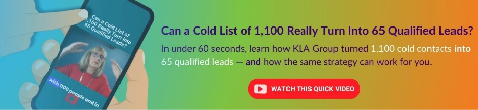 Cold lists are difficult because they aren’t pre-qualified. Sales reps often waste time chasing uninterested names unless marketing runs a KLA Group campaign to warm them up first.